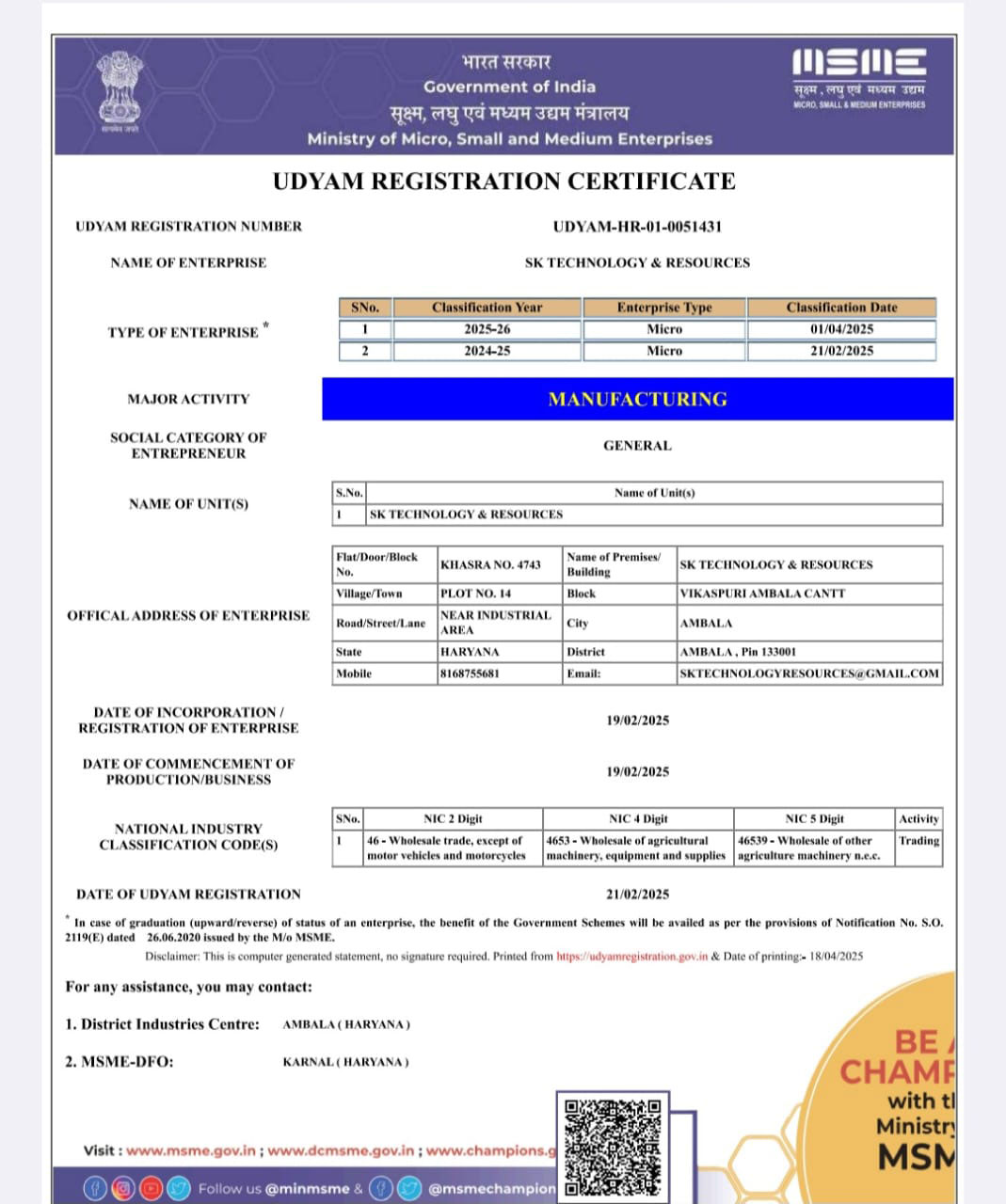 At SK Technology & Resources, we understand the evolving demands of the agriculture and processing sectors, and our team works closely with clients to provide machines that enhance productivity, reduce labor dependency, and improve overall output quality. From small-scale units to large processing plants, we offer solutions tailored to diverse operational requirements.